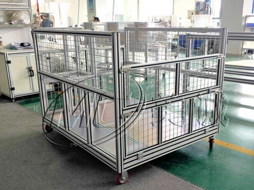 實用鋁合金型材做的威海周轉車的底部,安裝腳輪時直接實用螺栓螺母就能連接并固定好,同時所用到腳輪還能夠承重。例如移動貨架、機柜、工作臺、展示架等,之時需于底部,安裝上腳輪即可。